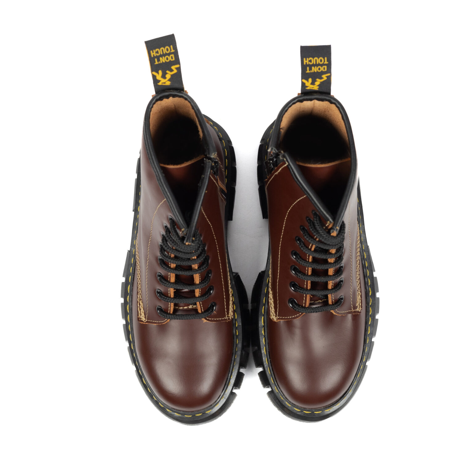 جنس :رویه چرم طبیعی نحوه بسته شدن : بند و زیپ نحوه نگهداری :واکس گیاهی و بدون پارافین قالب یک سایز بزرگتر از حالت استاندارد سایز 37. 38 39 40